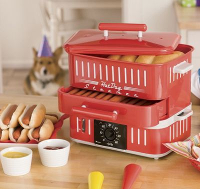 Nostalgia hdr8ry hot dog warmer 8 regular sized, 4 foot long and 6 bun capacity, stainless steel rollers, perfect for breakfast sausages, brats, taquitos, egg rolls, red/yellow. 4.4 out of 5 stars. / kitchen appliances / specialty appliances / hot dog warmers. Great style and great taste: (175) total ratings 175, $90.40 new. With a stainless steel lid and stainless steel heating plate, making it a quick and mess free way to make eggs. Shop for hot dog warmers in specialty appliances. Save up to $100♢ on your qualifying purchase. Bread makers are some of the most popular specialty small appliances. Item # 2570555 model # hds248rd. Commercial hot dog machines roll the dogs continuously to ensure that they're cooked to perfection. The stylish canopy doubles as a bun warmer, holding up to 6 buns at a time. Right off the bat, it made a batch of very tasty dogs.